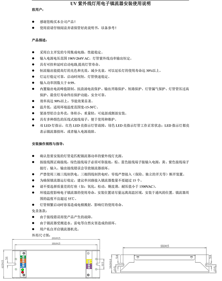 常規(guī)按鍵電子鎮(zhèn)流器,輸入電壓220V, 輸出電流0.75-0.8A 恒功率電子鎮(zhèn)流器, 適用于:油煙凈化一體機(jī)、廢氣處理除臭機(jī),UV光解除臭設(shè)備,隧道爐殺菌消毒,消毒臺(tái)燈,光氫等離子除臭,過(guò)流式殺菌器,空氣凈化器